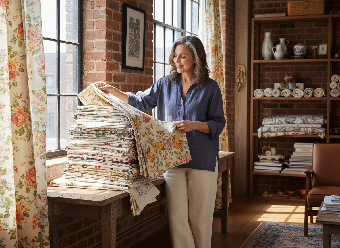 Fold and stack vintage printed tablecloths in an open display cabinet. Tuck a smaller tablecloth under your grandmother’s teapot in the china cabinet. Hang them from a vintage ladder or over a stair rail. Bring one out on the garden patio for a lovely lunch spot. These wonderful vintage tablecloths are anywhere from 50 to 125+ years old and were used and cherished. Most will show signs of use. Linens in perfect condition are usually stored carefully and only brought out for “show”.